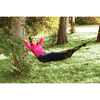 ProForce Tropical Bigfoot Hammock. Measures 9 feet long x 4' 5 inches wide. Handles up to 400 pounds. Made of lightweight but super strong parachute nylon material with triple nylon stitched seams. Comes with a storage bag. Two heavy-duty steel carabiners for quick setup. Comes with a Suspension Attachment System to make setting up and securing to trees easy. The Suspension Attachment System is made of 550 cords with knots spaced to allow for different attachment points and distances from the tree or post to the hammock.